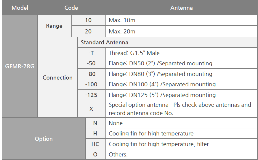 – 10m, 20m: 2-Wire system: 4~20mA with Hart